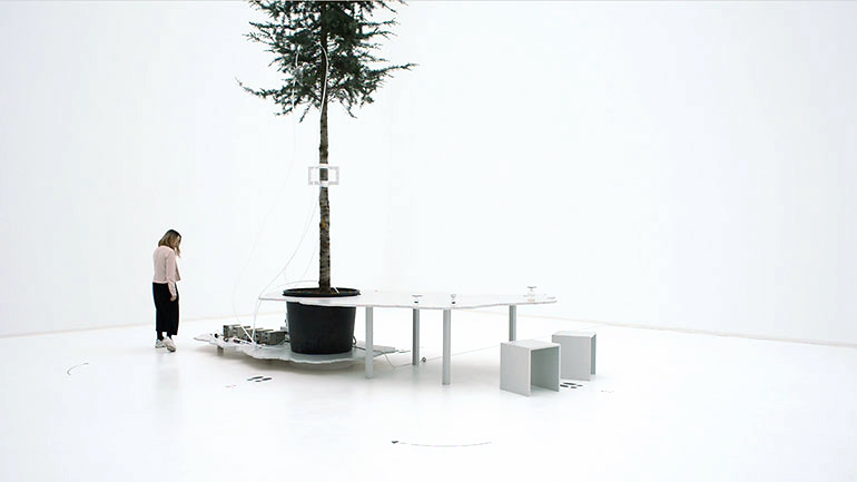 Installation "One Tree ID - How to Become a Tree for Another Tree", "exhibition "Experiment Zukunf"t, Kunsthalle Rostock, DE, 2019 |